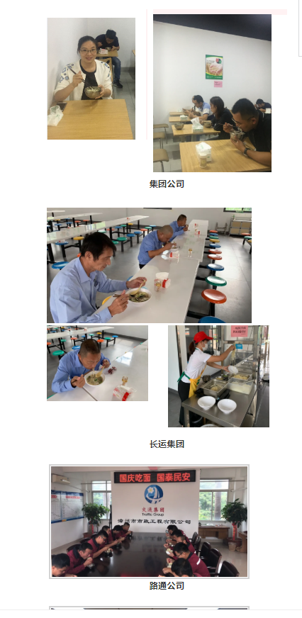 為慶祝新中國成立71周年,倡導(dǎo)國慶新民俗,集團及所屬各單位組織開展“國慶吃面 國泰民安”主題活動,大家團團圍坐,吃著一碗碗香噴噴的面,暢談著美好工作與生活。大家深深感受到,今天幸福美好的生活,得益于祖國的繁榮富強,也共同祝愿祖國繁榮昌盛、國泰民安!