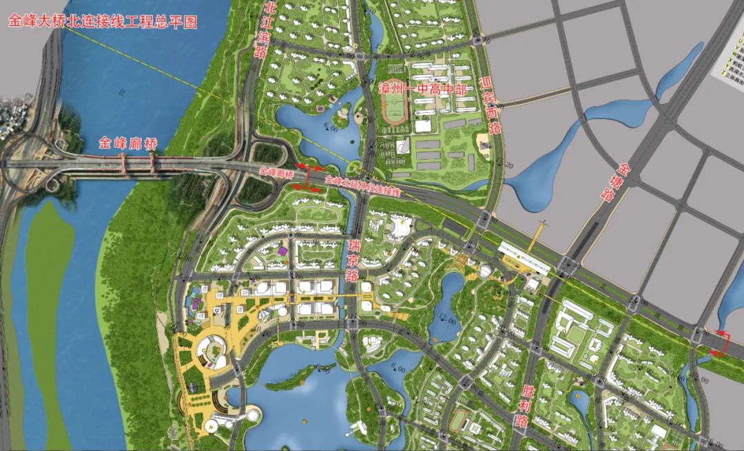 金峰大橋北連接線工程位于漳州市薌城區(qū)西湖生態(tài)園片區(qū),項(xiàng)目起點(diǎn)接金峰大橋北江濱互通鼻端處,終點(diǎn)接北環(huán)城路,全長1.79km。路基寬度60m,設(shè)計(jì)速度60km/h,道路等級(jí)為城市主干路。項(xiàng)目主要工程內(nèi)容包括道路交通、橋涵、管廊、給水、污水、雨水、照明、電力、通信和綠化等。項(xiàng)目共新建橋梁3座,全線管廊采用雙艙管廊,管廊總長度為1517m。