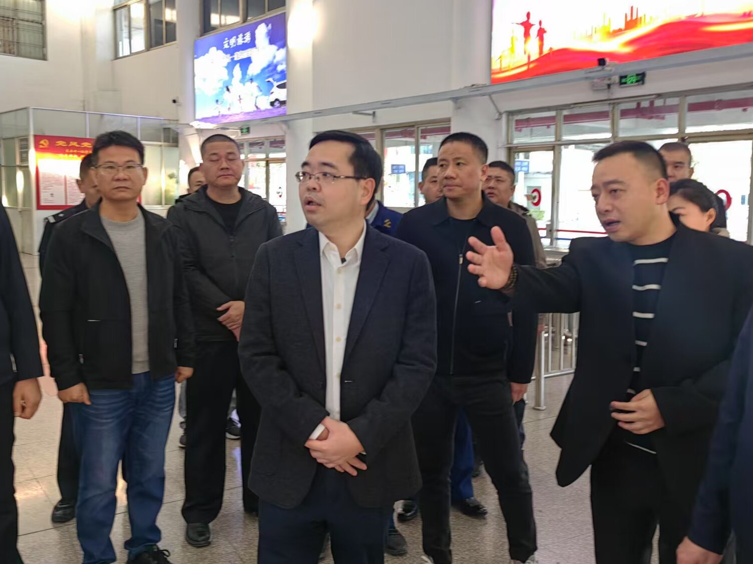 林少金副市長(zhǎng)一行深入客運(yùn)中心站一線(xiàn)崗位實(shí)地檢查,詳細(xì)了解春運(yùn)期間運(yùn)力安排、安全生產(chǎn)、應(yīng)急處置等情況,對(duì)車(chē)站的各項(xiàng)工作予以充分的肯定。