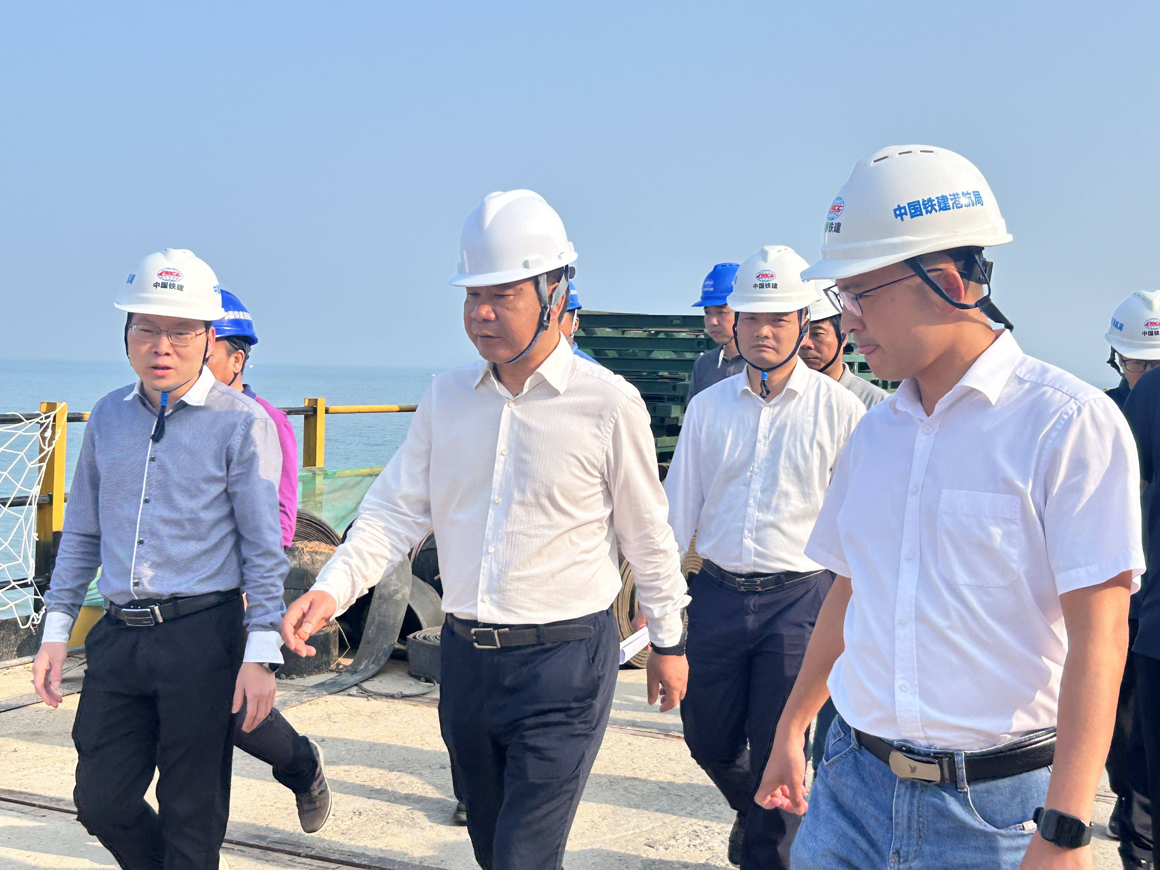 4月10日下午,省發(fā)改委二級巡視員李建和帶隊到防波堤項目調(diào)研指導(dǎo),省發(fā)改委農(nóng)經(jīng)處處長林棟、副處長徐增恩陪同調(diào)研。
