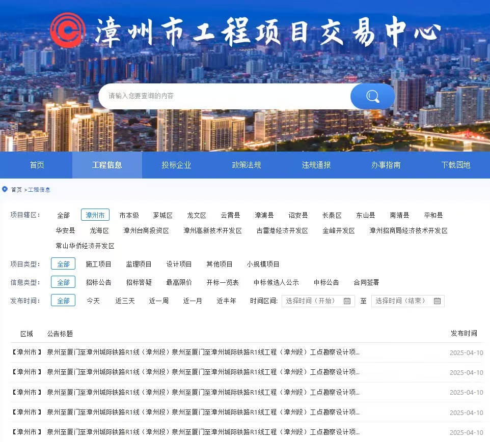 4月10日,由建設(shè)單位漳州市鐵路投資開(kāi)發(fā)有限公司主導(dǎo)的泉州至廈門至漳州城際鐵路R1線(漳州段)項(xiàng)目迎來(lái)關(guān)鍵節(jié)點(diǎn)——第二輪招標(biāo)公告正式發(fā)布,標(biāo)志著該項(xiàng)目進(jìn)入全面深化設(shè)計(jì)與實(shí)施階段。此次招標(biāo)涵蓋五大標(biāo)段,涉及停車場(chǎng)、應(yīng)急指揮中心、變電設(shè)施等核心工程,進(jìn)一步推動(dòng)項(xiàng)目高效落地。