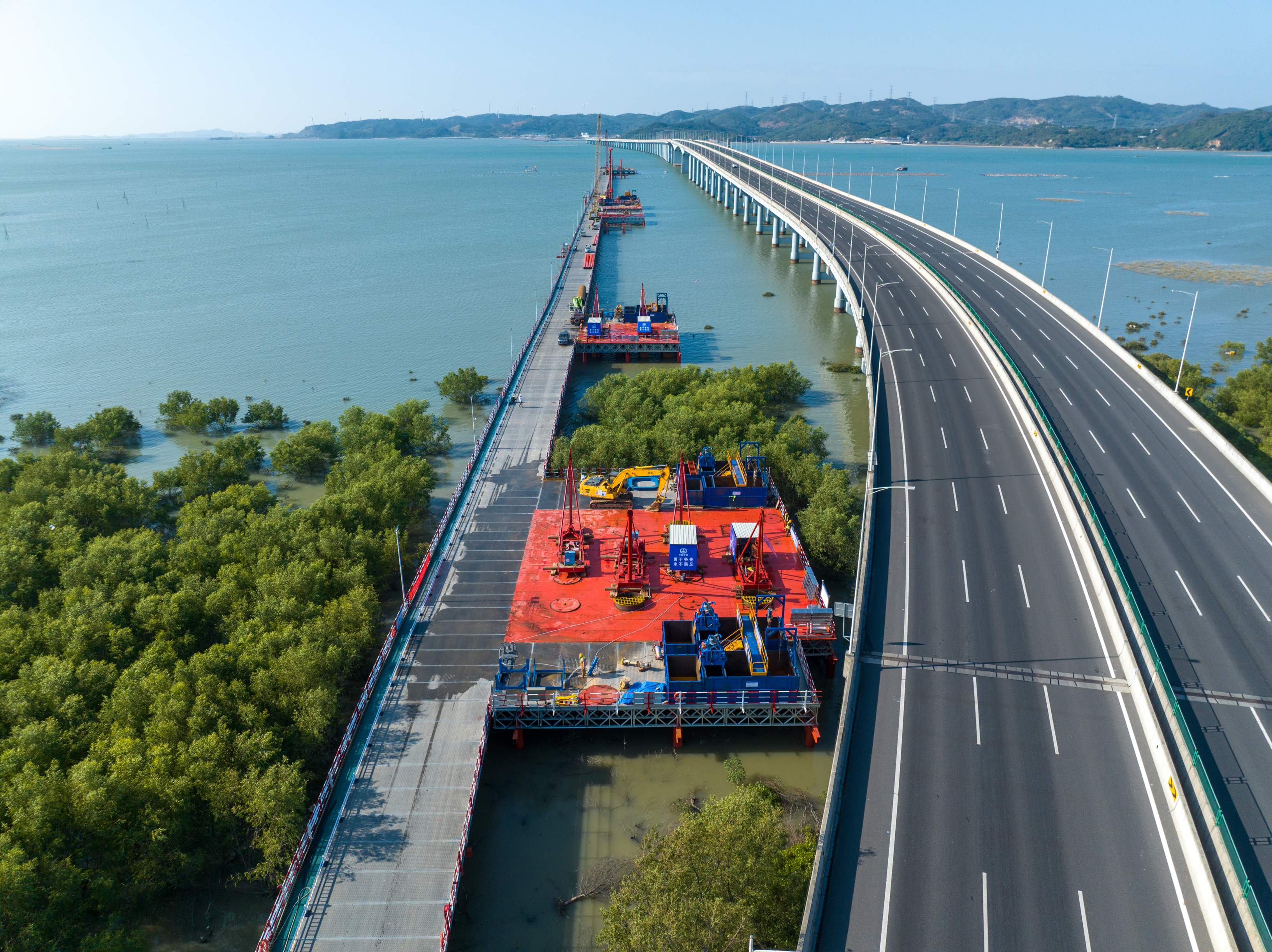 在各方的共同努力下,漳汕高鐵(福建段)3標(biāo)全線已累計(jì)完成樁基975根,承臺88個(gè),墩身71個(gè),海上鋼棧橋完成3168米,隧道正在進(jìn)行進(jìn)洞施工前的準(zhǔn)備工作。